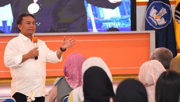 LOVEBANDUNG.com : Sekretaris Daerah Provinsi Jawa Barat Herman Suryatman memberikan pembekalan teknis program Merdeka Belajar Kampus Merdeka (MBKM) UPI dan penyuluhan terkait pencegahan stunting serta pengelolaan sampah di Auditorium FPEB UPI, Kota Bandung, Selasa 3 September 2024.